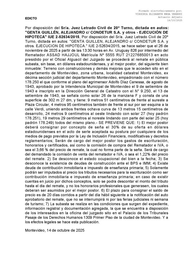 Juzgado Letrado Civil de 20 Turno IUE 2-52634/2015
